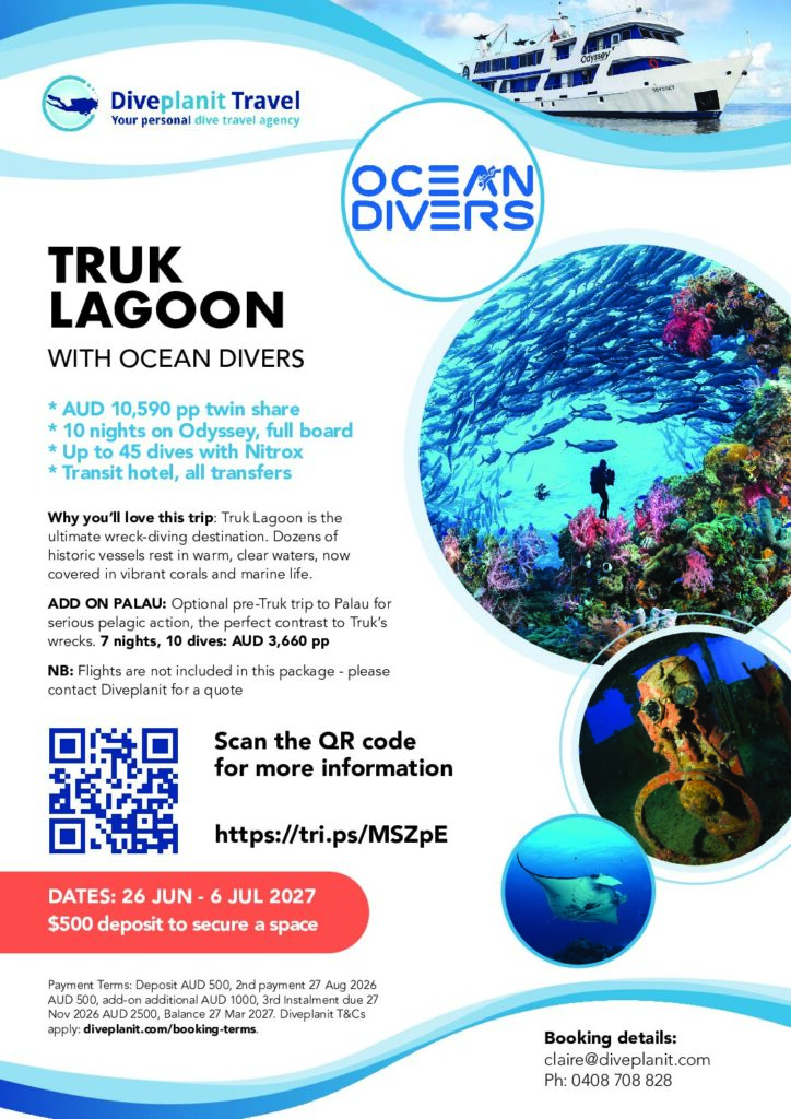 Ocean Divers are going back again, to spend an extended stay of 10 days in Truk on-board the Odyssey Live-aboard vessel.